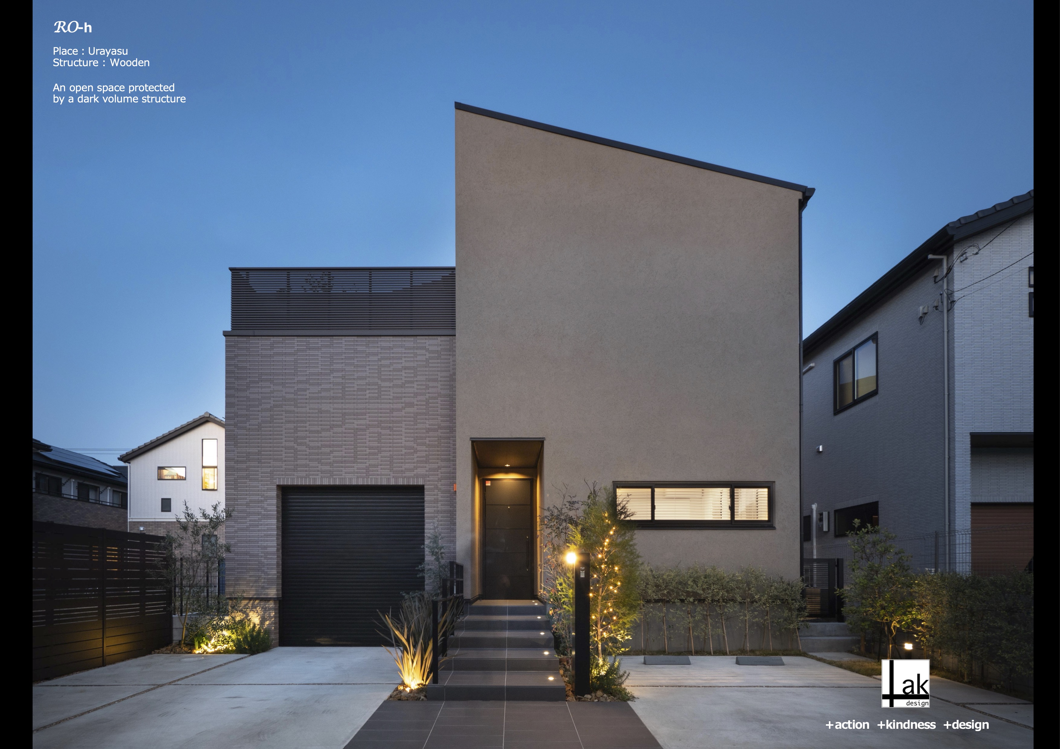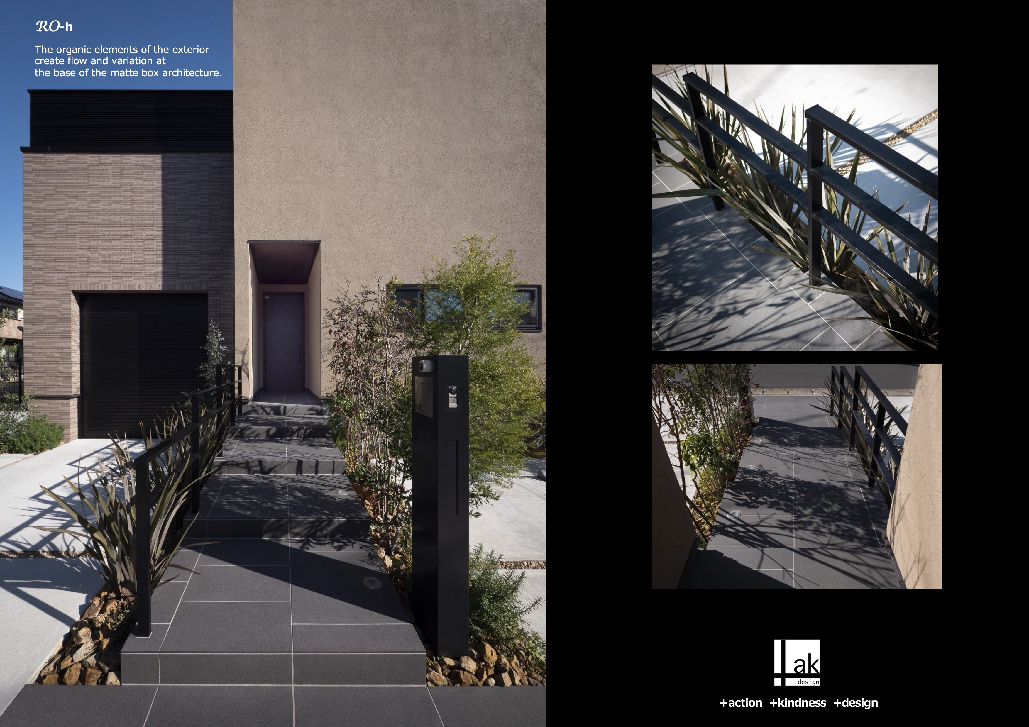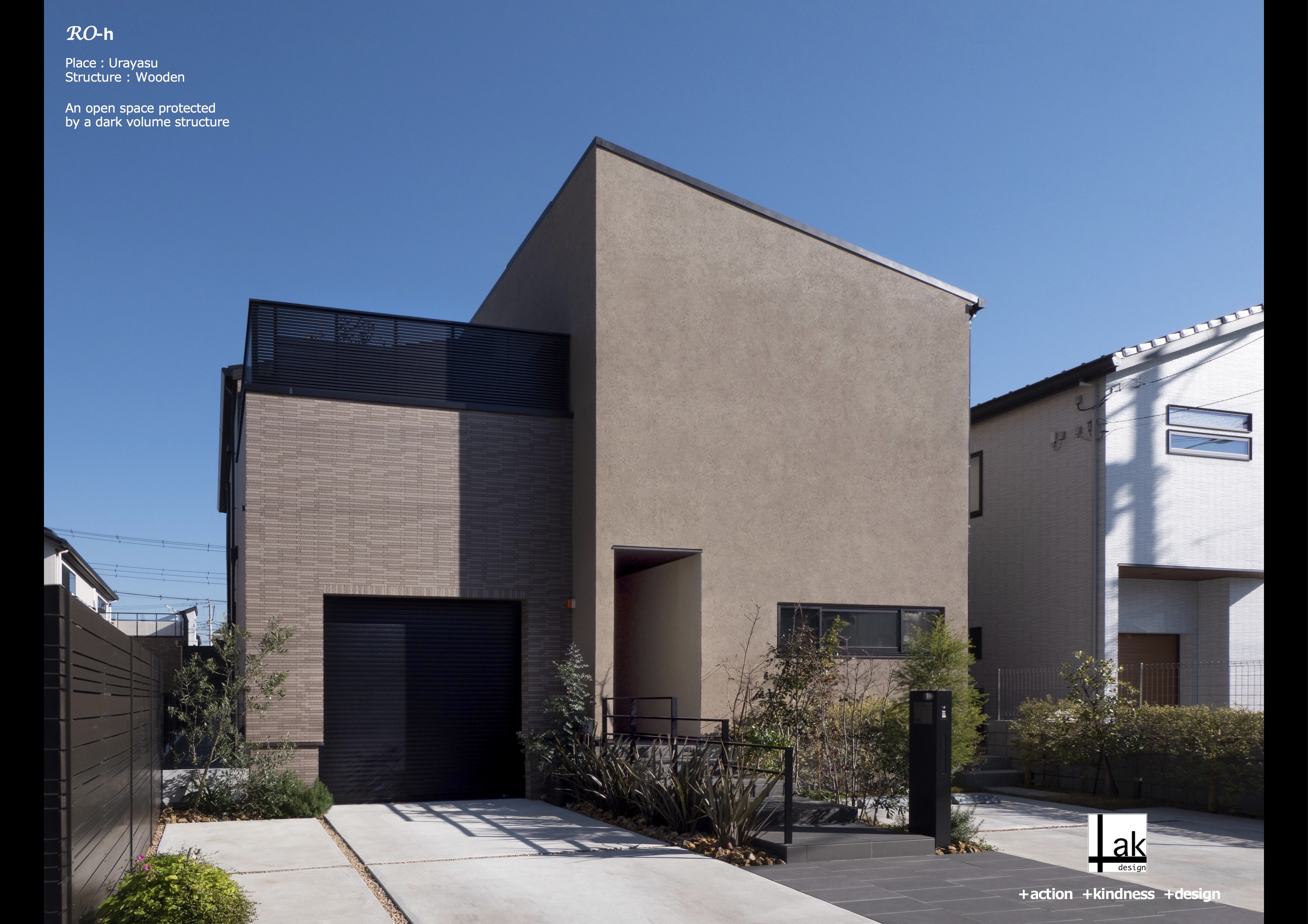 敷地前面に敷き込みを持ち、マットなボックスで構成された外皮に