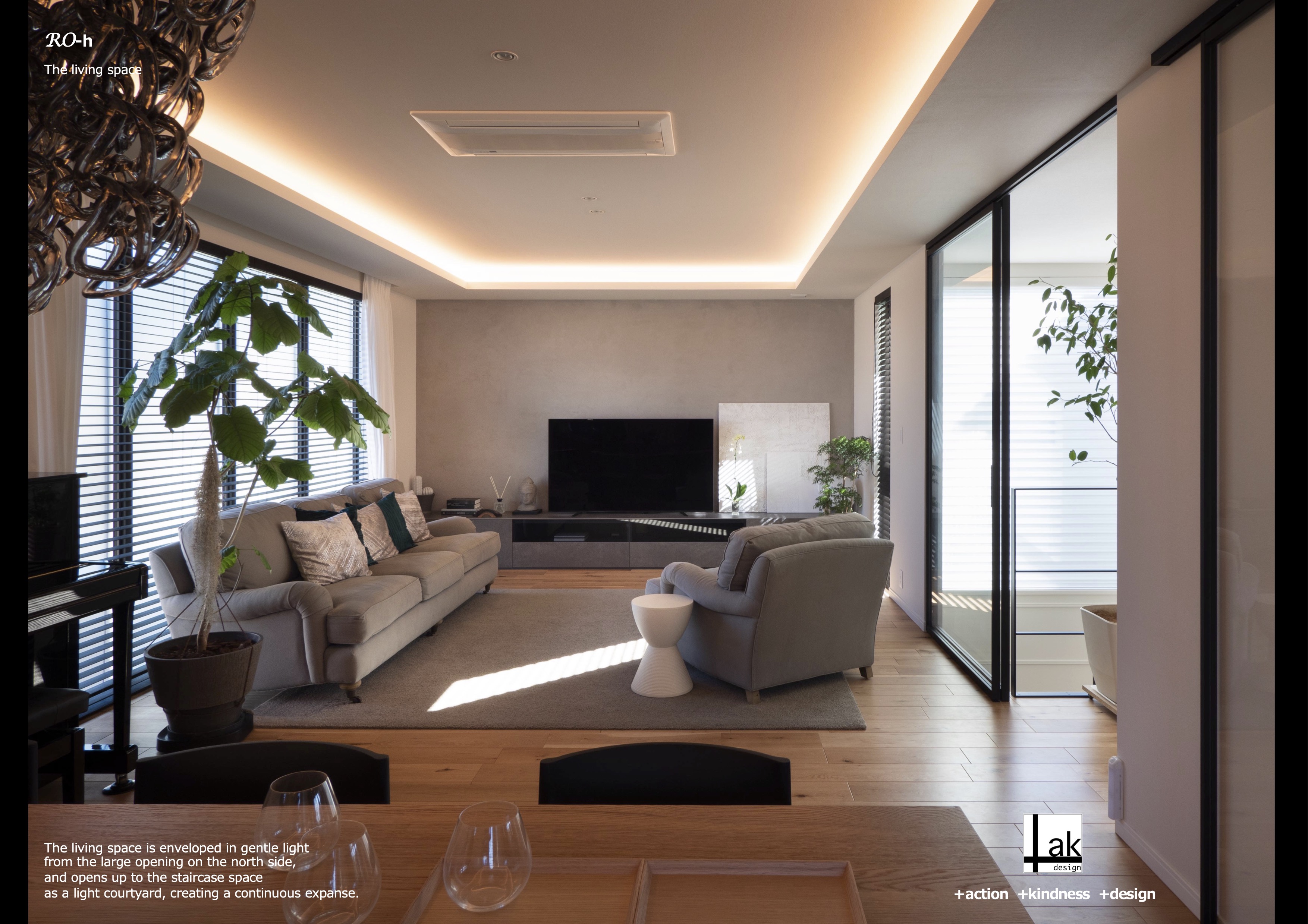 優しい外光と連続する光線でつながる住空間計画